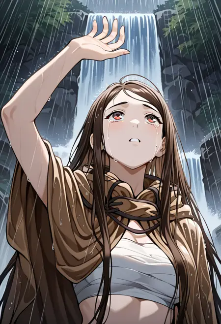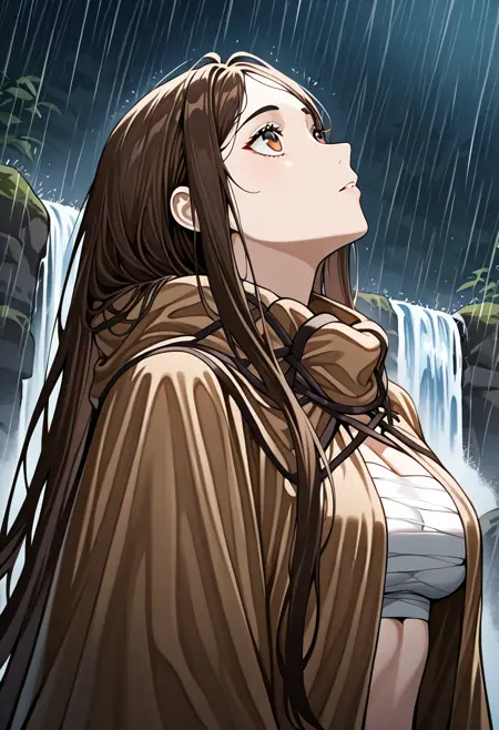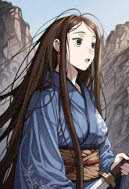 very long hair, brown hair, brown eye, medium brests