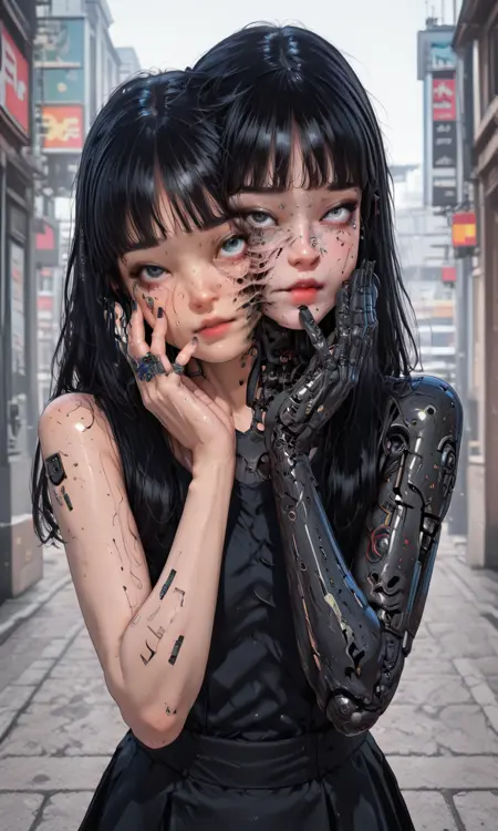 Nier Automata의 2B 캐릭터에는 전혀 효과가 없지만(가끔 손가락만 로봇 손가락으로 바뀝니다). 이 외에는 캐릭터의 몸에 사이버네틱 부위가 추가되고 얼굴은 대부분 원래대로 유지됩니다.