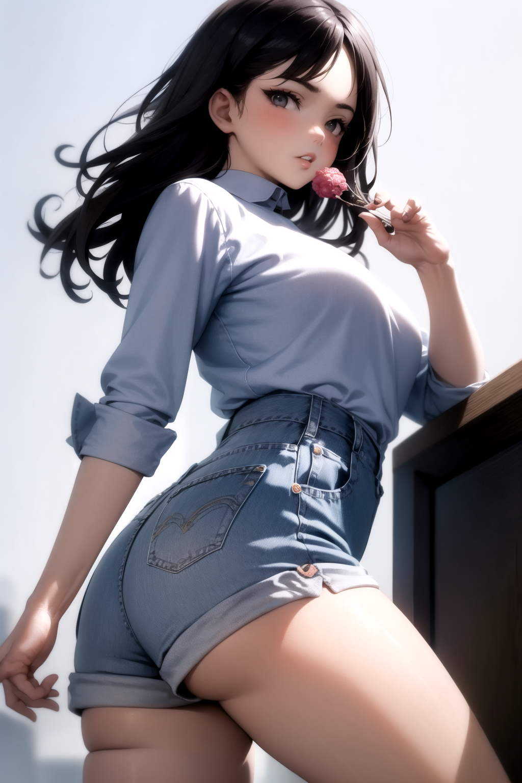 LoRA 训练用于生成高腰牛仔短裤(Levi's 风格)。我发现使用基础模型很难稳定生成这种特定款式的牛仔短裤,因此这个 LoRA 解决了这个问题。如果你希望看到更多此类 LoRA,请告诉我。