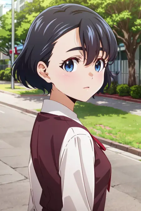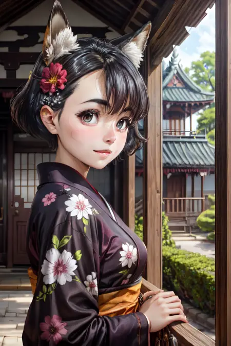 koito, 短发, 黑发, 和服, 木屐, 巫女, 裤裙, 白色和服