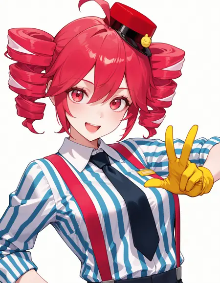 テトを異なる服で描きたい場合、ネガティブに「parade uniform」を必ず記入し、オプションとして「黄色の手袋、ネクタイ、縞模様のシャツ、サスペンダー、赤い帽子」を追加してください。これにより、LoRAの安定性が向上します。
