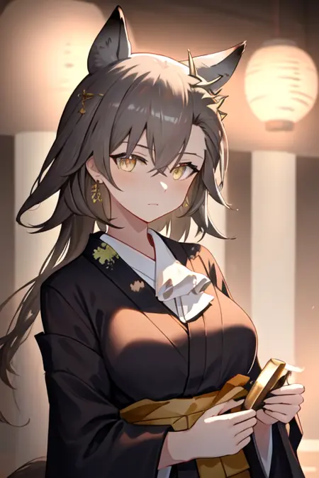 - 프루닝된 캐릭터 태그는 animal_ears, wolf_ears, long_hair, brown_hair, extra_ears, wolf_girl, yellow_eyes, breasts, bangs, large_breasts, tail, hair_between_eyes, wolf_tail, braid입니다. 캐릭터의 핵심 특징(예: 머리카락 색상)이 안정적이지 않을 때 이 태그들을 프롬프트에 추가할 수 있습니다.