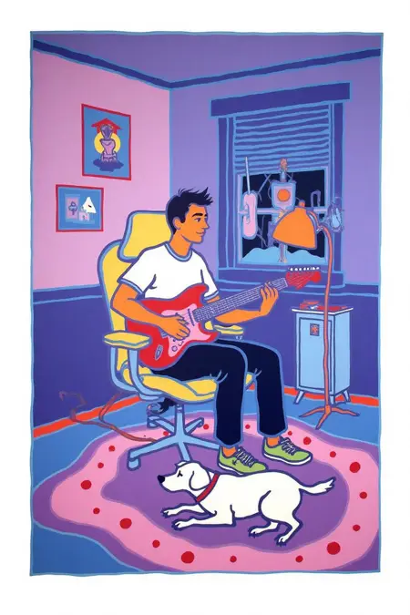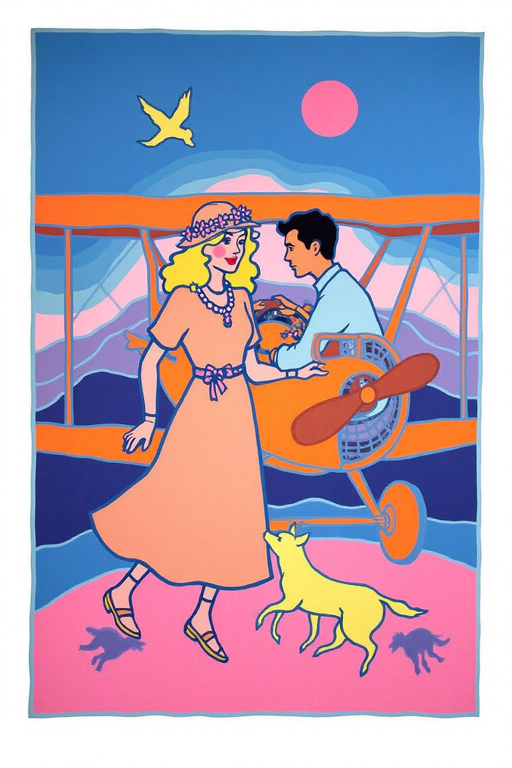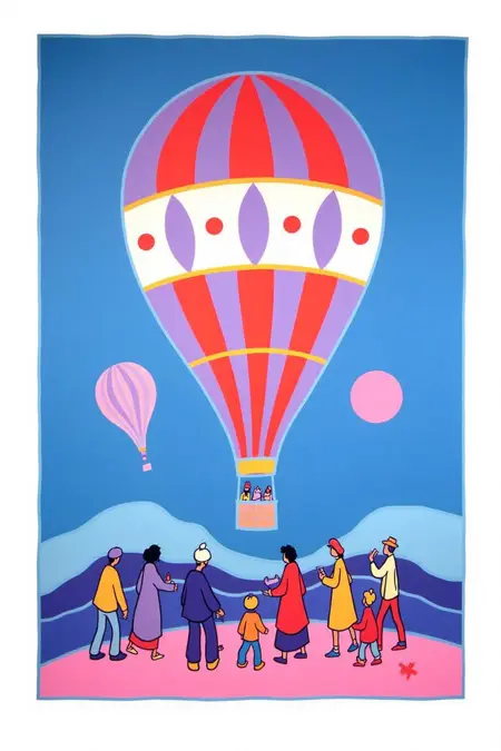 - 스타일리시한 인물: 사람과 동물은 민속 예술 스타일로 묘사되며, 화려한 배경과 자연스럽게 어우러짐.
