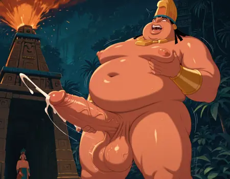 사용: 큰 남성, 뚱뚱한 남자, 치ef 탄나보크, 귀걸이 달린 금관, 파란색 및 녹색 치마, 배, 통통한
