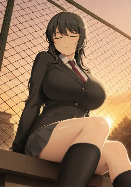 "school uniform, necktie,blazer, jacket,skirt,black socks,loafers"