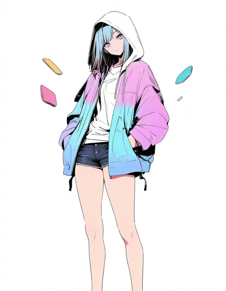 这个LoRA可以生成清新简约的风格,但请注意使用时不要添加其他风格,否则将无效。推荐提示词:manimani, simple background, screentones, colorful