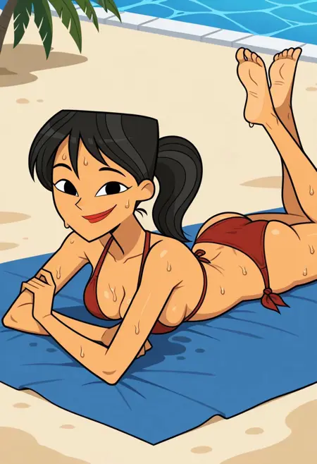 1girl, solo, Kristal_DC, tan skin, black hair, hairstyle ponytail, dark brown eyes