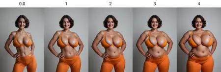 このスライダーは、細かなボディシェイピング用に設計されており、自然な解剖学的バランスを保ちながら、体重やプロポーションをスムーズに制御できます。繊細な体型の調整から劇的な変化まで、高品質な結果を提供します。Pony、Illustrious、SDXLモデルで動作します。
