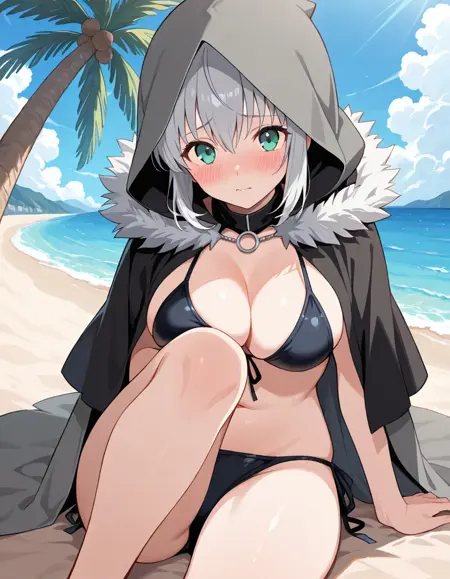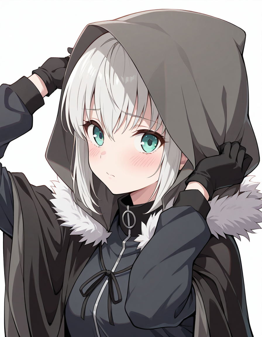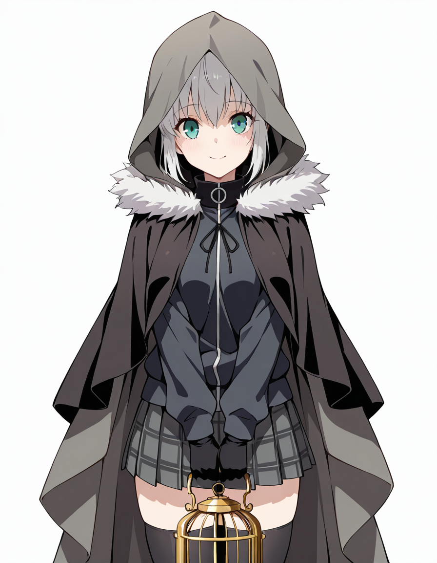 Graydef, def_track_jacket, def_neck_ribbon, def_fur_trim_capelet, def_thighhighs, def_skirt, def_hooded_cloak, def_gloves, def_boots,