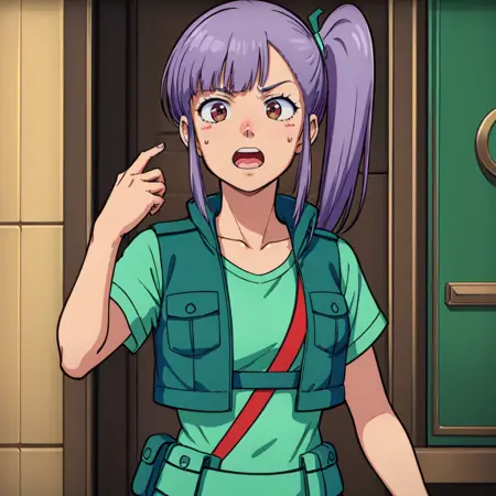 long hair,side ponytail,bangs,sidelocks,light purple hair,brown eyes,