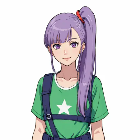 long hair, side ponytail, bangs, sidelocks, light purple hair, brown eyes,