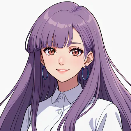 长发,直发,浅紫色头发,侧发,单侧新月耳饰,刘海,饰品,棕色眼睛,