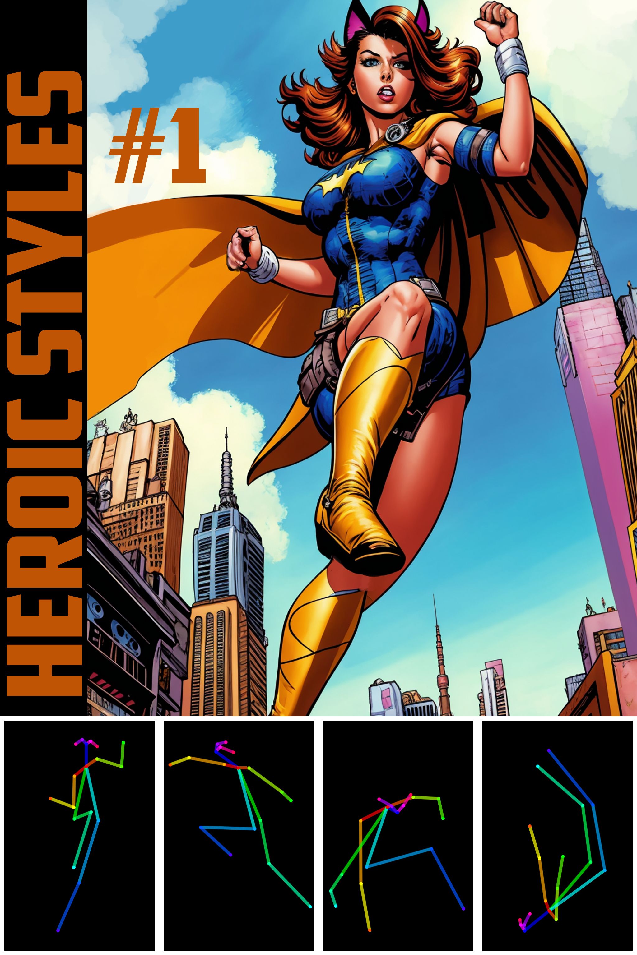 아카이브 파일을 다운로드하세요. 안에는 기존 이미지에서 생성하는 대신 ControlNet이 사용해야 할 자세들이 포함되어 있습니다. 평소처럼 프롬프트를 구성하세요. 모델에게 이 프롬프트가 (영웅 / 비행 / 전투) 자세임을 알려주어 도움을 주세요. ControlNet 설정에서 전처리기는 'none'을, 모델은 'openpose'를 선택하세요. 모델이 얼마나 어렵게 작동할지에 따라 가중치를 조정하세요. 제공된 자세 이미지는 512x768의 2:3 비율입니다. 선호하는 프로그램을 사용해 기존 이미지를 자르거나 확장하여 원하는 구성으로 커스터마이징할 수 있습니다.
