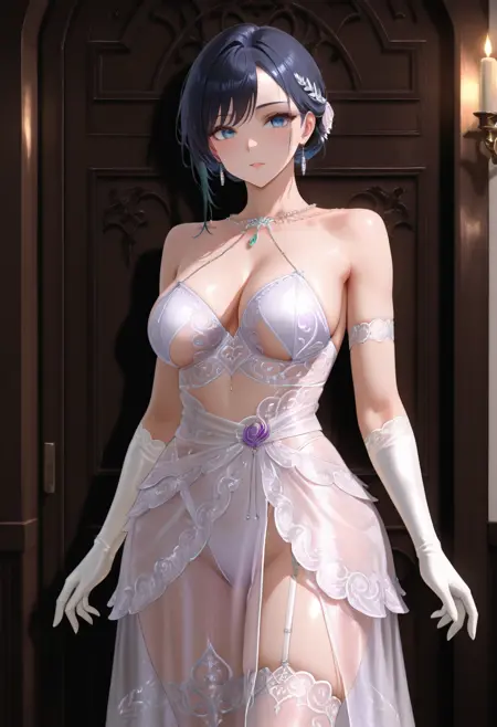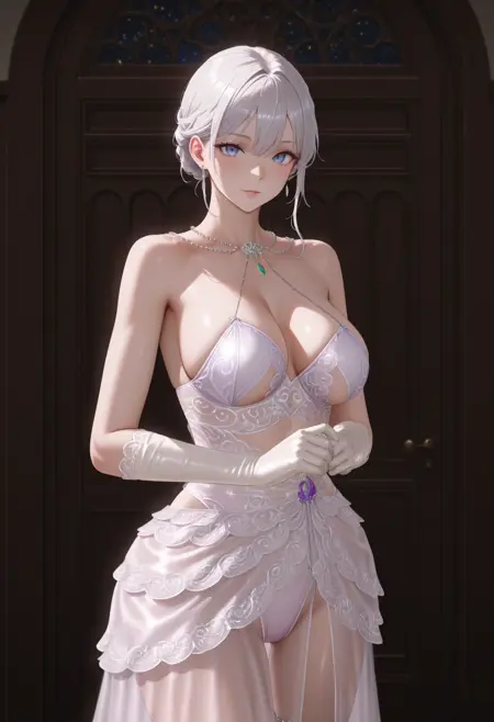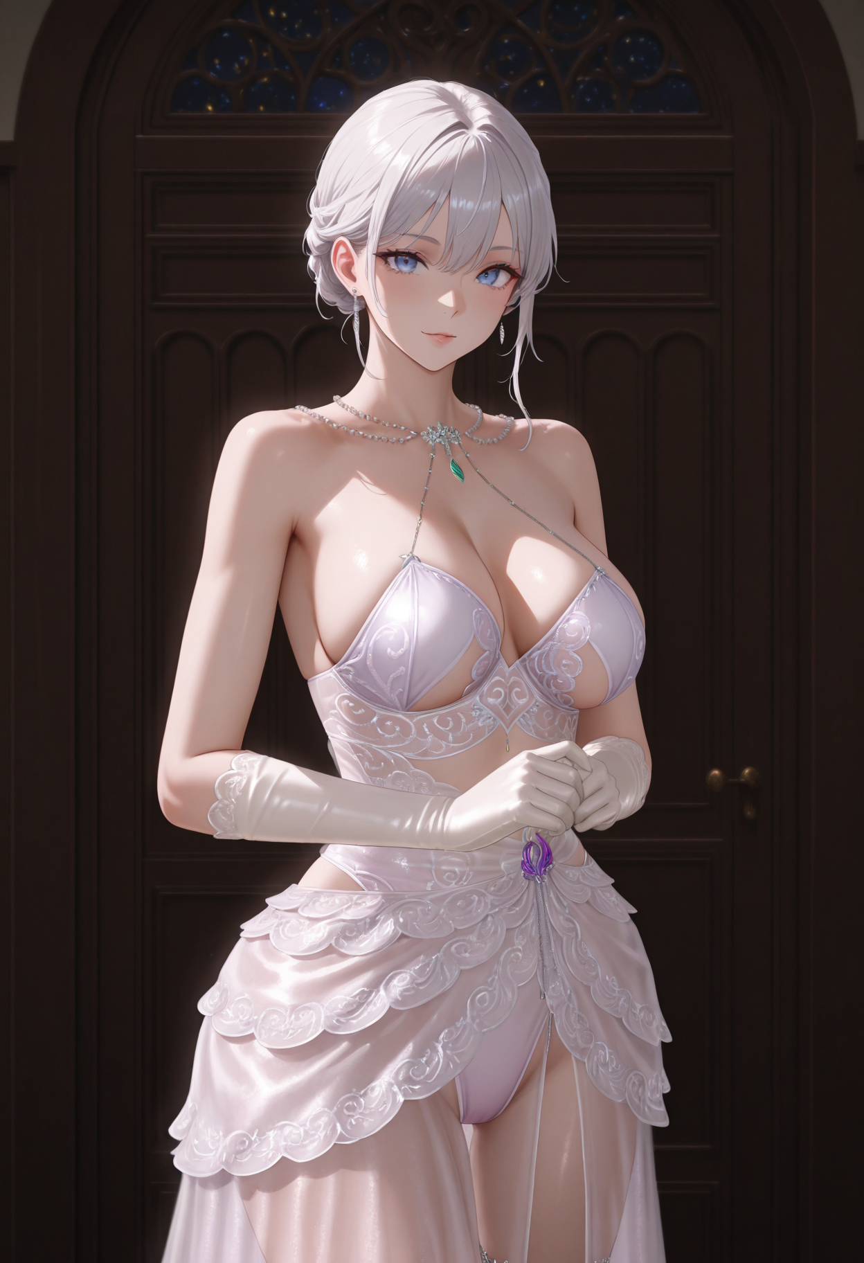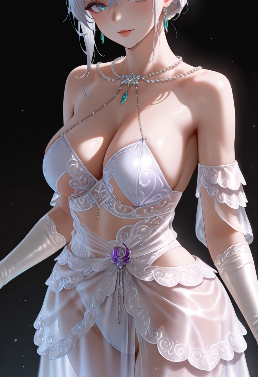 fiotc dress,see-through ,jewelry, necklace, elbow gloves