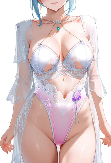 fionastc highleg pink swimsuit,sheer open coat,see-through ,jewelry, necklace
