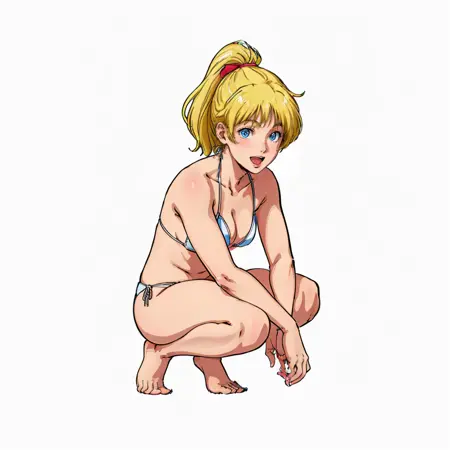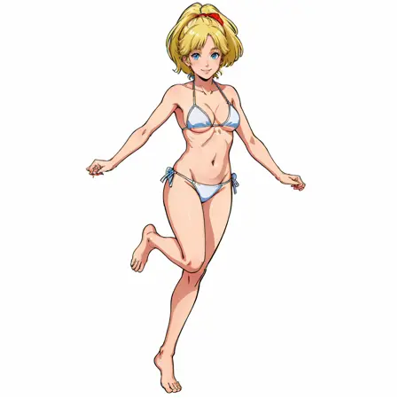 긴 머리, 높은 플랫테일, 플랫테일, 헤어 리본, 헤어 볼, 금발, 파란 눈,