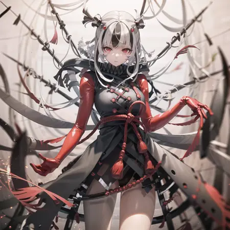 | 训练词汇 | an image of a woman dressed in red and black that looks like an anime character, 1girl, solo, heterochromia, beads, red eyes, multicolored hair, long hair, outdoors, city background, KashinKoji,已复制! art of a woman standing in front of a large spider web with weapons, 1girl, solo, extra arms, red eyes, multicolored hair, long hair, outdoors, room background,已复制! dazzling red armor-wearing woman holding claws aloft in one hand, 1girl, solo, weapon, red eyes, armor,已复制! |
