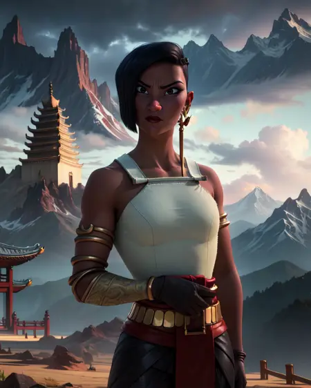 Namaari, 검은 머리, 갈색 눈, 또는 옆으로 흐르는 머리,