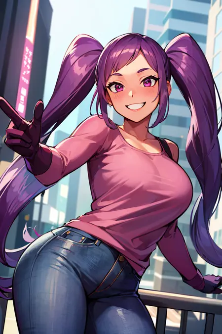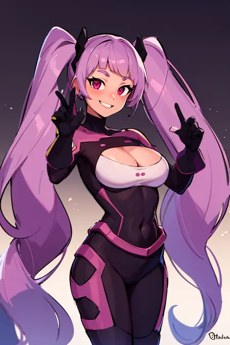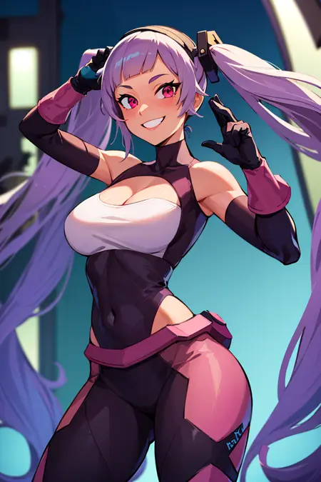 트리거: Entrapta_Shera <-- LoRA 파일 이름과 동일하며, 기억하기 쉽지 않나요?추가 프롬프트: twintails,15장의 이미지로 학습됨