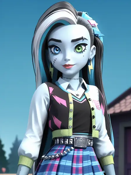 It's Frankie Stein from Monster High: Skultimate Secrets (which is based on Frankie Stein G3). Trained on images from the video game and the 3D animation.