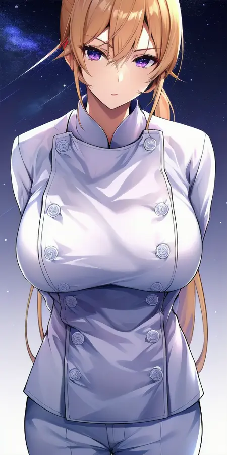 Erina 厨师:low_ponytail, White_chef_uniform_White_jacket_White_pants