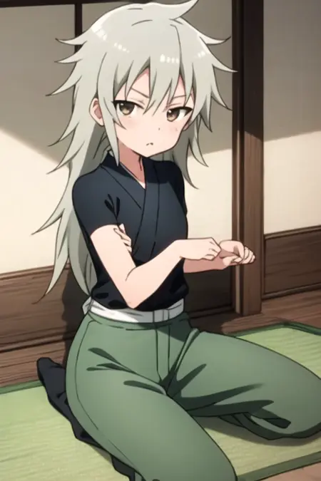 kunoichi_oniyuri, brown eyes, gray hair, long hair, japanese clothes