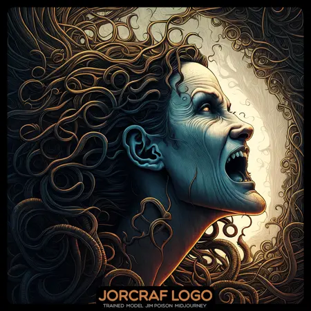 ADD \ 正面视角,(你的创意:1.1)人物头像,对称性艺术感锐利风格,(丹·姆福德风格:1.1),hdr,写实,黑暗幻想氛围,洛夫克拉夫特风格,(JimJorCrafLogo艺术风格:1.3)