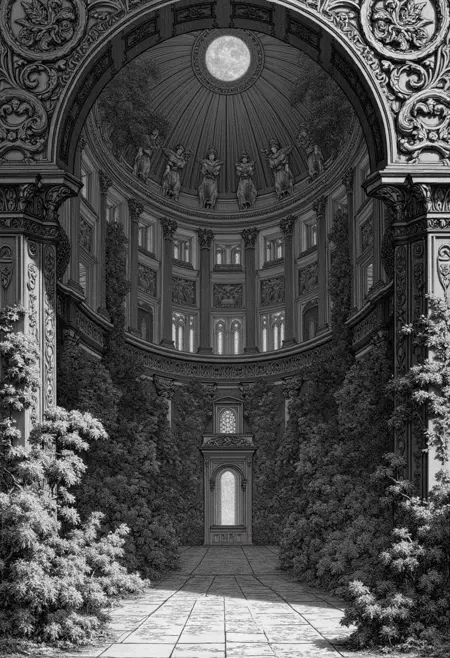 • 例:“In the style of a YFG-Pira etching, depict a labyrinthine cathedral interior filled with towering arches, ornate carvings, and deep shadows.”