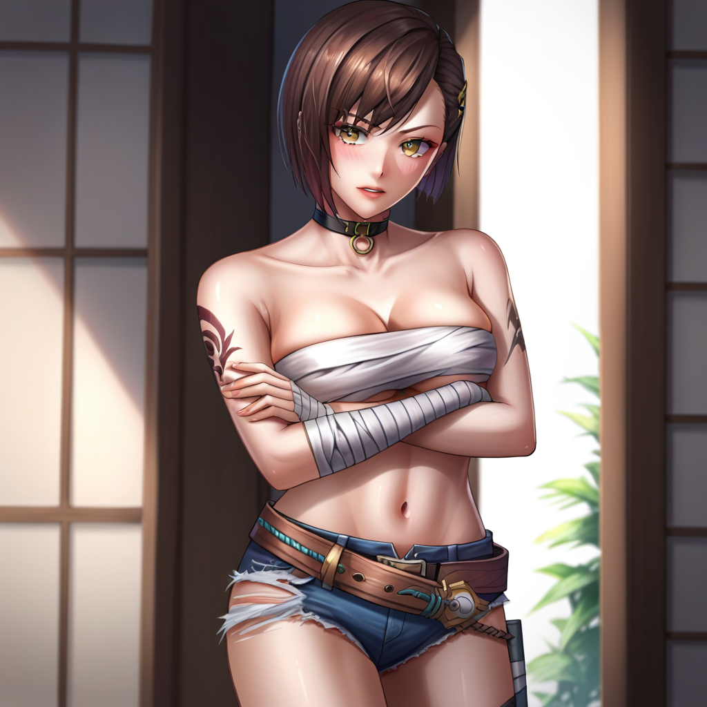 | 训练词汇 | CSO_Ritsuka, 1girl, solo, short hair, brown eyes, brown hair, breasts, medium breasts, bare shoulders, bandaged arm, tattoo, sarashi, very short shorts, denim shorts, black choker, belt已复制! CSO_Agent_Ritsuka, 1girl, solo, breasts, large breasts, makeup, purple hair, multicolored hair, black hair, short hair, eyeshadow, nail polish, ring, necklace, lipstick, red lips, midriff, chain, black tube top, long sleeves, black skirt, navel, miniskirt, pantyhose, fishnet pantyhose, black footwear, boots, thigh boots, shrug (clothing), earrings, thighhighs, jewelry已复制! |