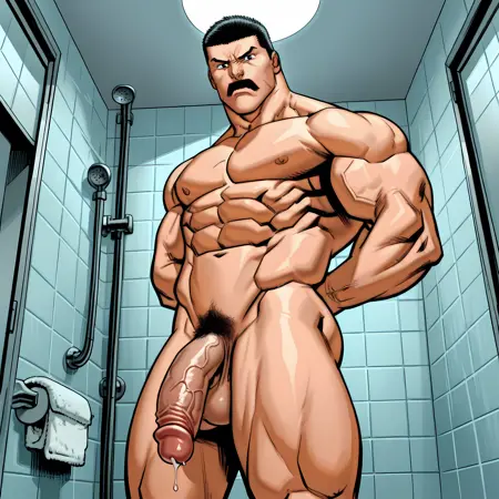Trigger words: thragg, black hair, black eyes, black mustache, bodysuit, logo, white pants, white skirt