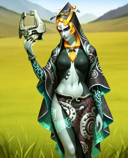 I wanted to see if I could make one model that could reliably make both forms of Midna and I think this turned out pretty well. It works with lots of different checkpoints, and you can play around with species tags on furry checkpoints.