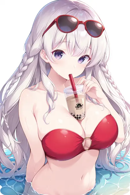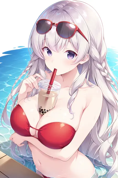 red_bikini, 밴도 비키니, 스트랩리스,