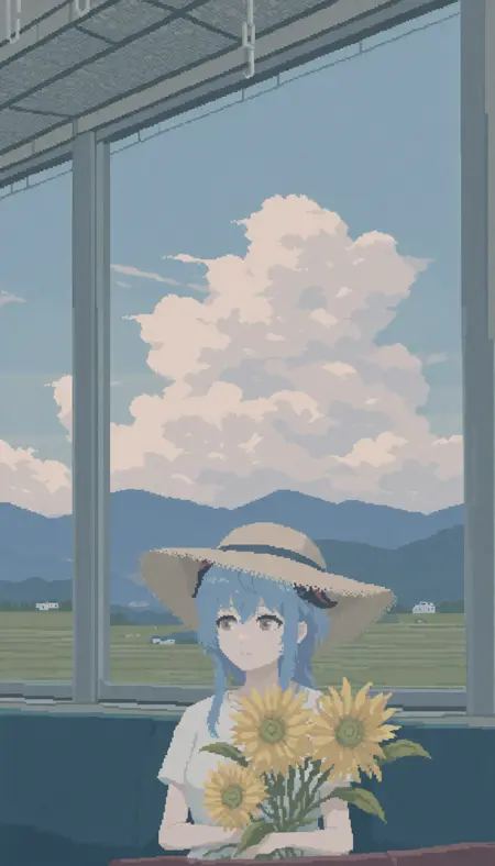 hires fix can be used to reduce the prominence of the pixelated style. The example images were generated with 2x hires fix.