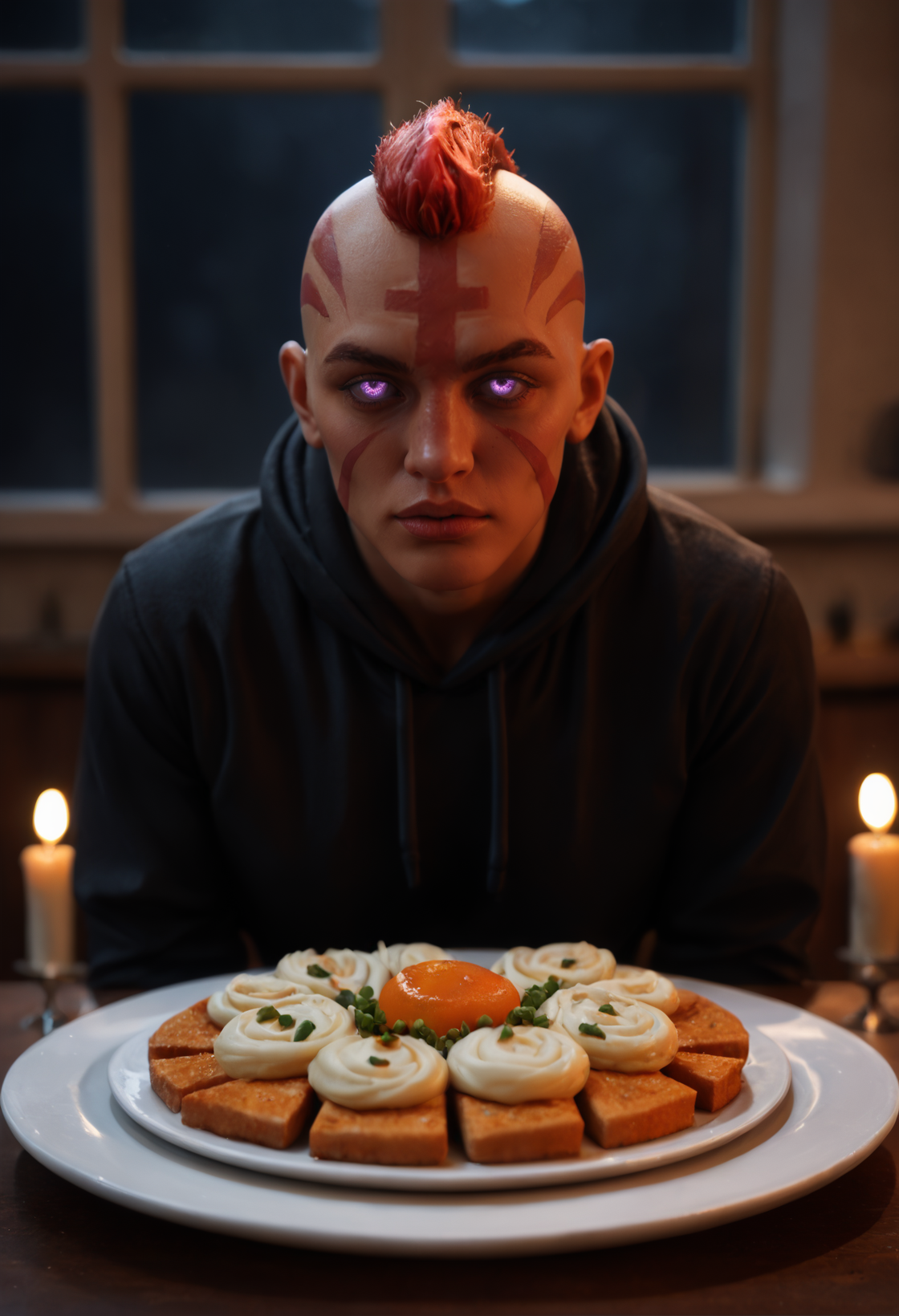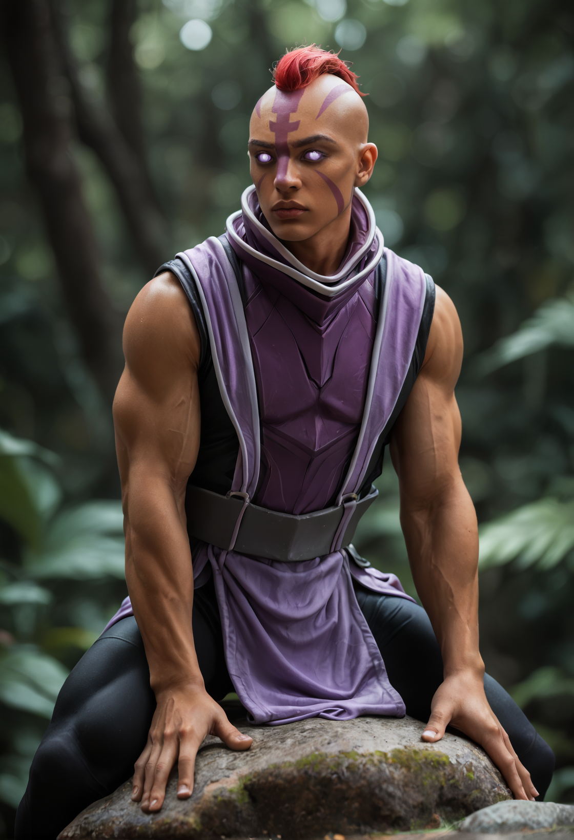 purple eyes, no pupils, blank eyes,