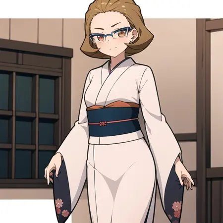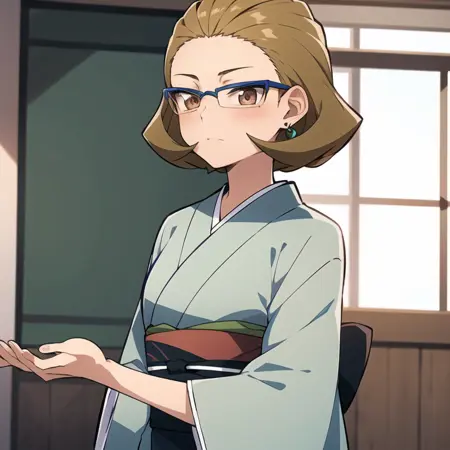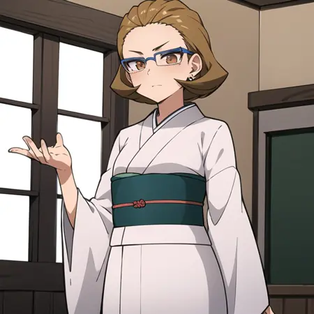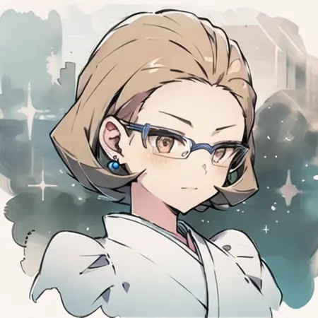 머리카락/특징: 단발, 갈색 머리카락, 안경, 귀걸이, 보석, 반프레임 안경, 갈색 눈, 눈, 안경을 통한 눈의 가시성