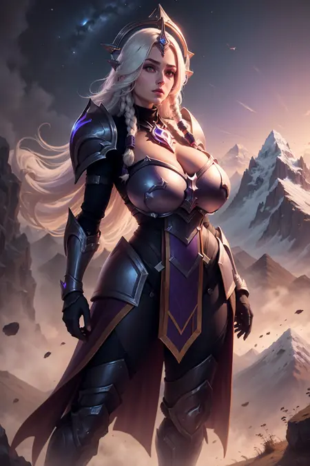 その他のプロンプト:白髪、長い髪、ツインビズ、紫の目、肩アーマー、アーマー