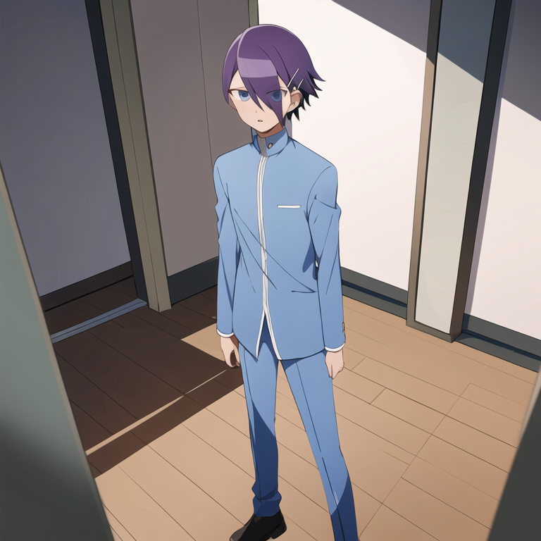 기본 복장: 학교 유니폼, 바지, 파란 바지, 검은 신발