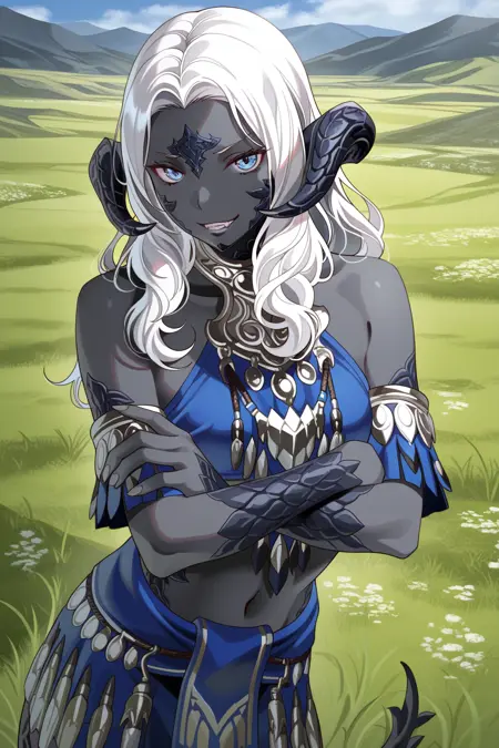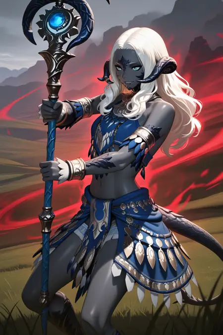 トリガーワードと外見: sadudotharl、灰色の肌、角、白い髪、うろこ