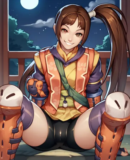 Akane, brown hair, heterochromia, ponytail, side ponytail,