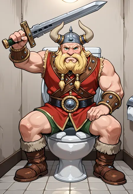 这完全是错误的设定,我不建议使用。它只是为了实验而制作,用来测试。尽管《失落的维京人》是相当知名的角色,但关于他们的同人图并不多,大多数都把三位维京人描绘成某种“英雄姿态”。为了训练,我尝试使用一张包含三位维京人的常见图片,然后将其拆分为三部分分别使用。我本希望LoRA能让Illustrious识别出图片中的每一位维京人,甚至能够同时描绘出三人。但实验失败了。