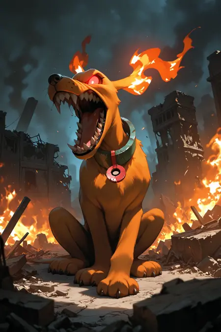 触发词:项圈、橙色毛发、宝可梦(生物)、无人类、狗