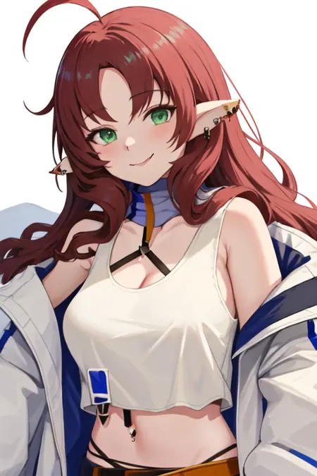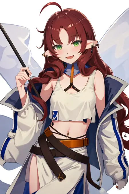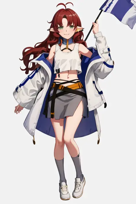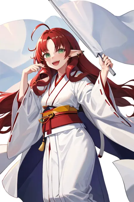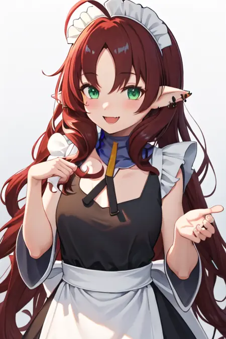 - 필터링된 캐릭터 태그는 긴 머리카락, 뾰족한 귀, 녹색 눈, 빨간 머리카락, ahoge, 갈라진 앞머리, 매우 긴 머리카락, 귀 piercing입니다. 캐릭터의 핵심 특징(예: 머리색)이 안정적이지 않을 때 이 태그를 프롬프트에 추가할 수 있습니다.