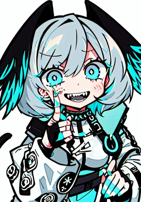 - The pruned character tags are grey hair, head wings, wings, breasts, aqua eyes, large breasts, hair between eyes, tail, snake tail. You can add them into prompts when core features (e.g. hair color) of character is not so stable.