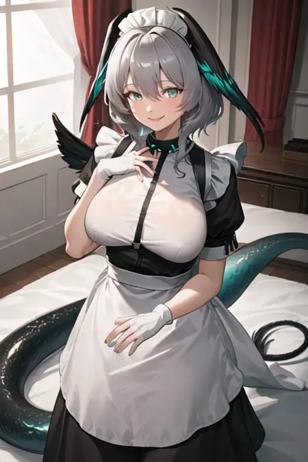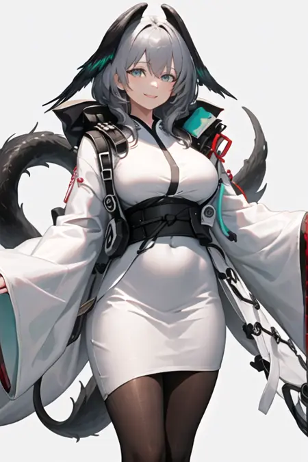- 经过剪枝的字符标签为:灰发、头翼、翅膀、胸部、蓝眼睛、大胸部、眼间头发、尾巴、蛇尾。当角色的核心特征(如发色)不够稳定时,您可以在提示词中添加这些标签。