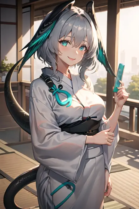 触发词为 ho_olheyak_arknights,剪枝标签为 grey_hair, head_wings, wings, breasts, aqua_eyes, large_breasts, hair_between_eyes, tail, snake_tail。当某些特征(如发色)有时不够稳定时,您可以在提示词中添加这些标签。