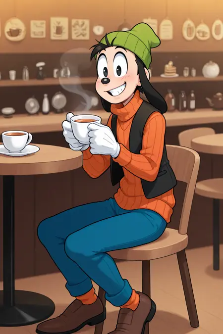 米奇最好的朋友高飞。效果因模型而异。标签越少,越像真人。
