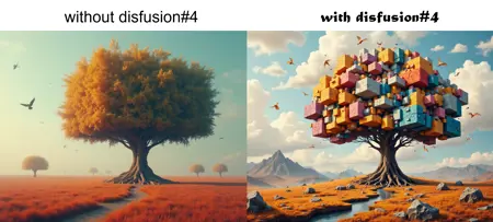 キーワードとして difusion を追加すると、効果がより強力で高品質になりますが、必須ではありません。