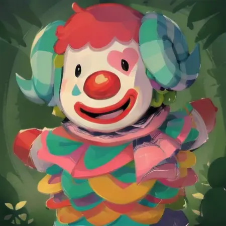 使用“围巾、粉色围巾”或“小丑服装”来获取他的其他造型。