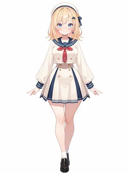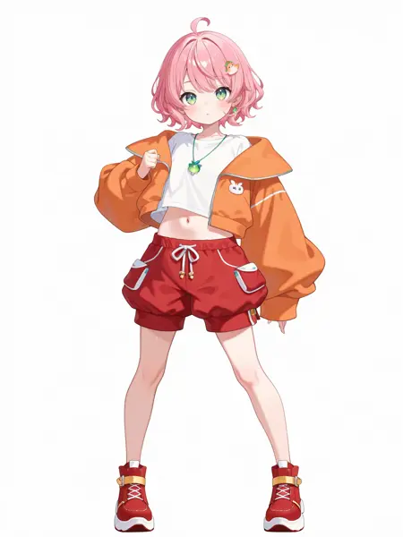 推奨プロンプト: "バーチャルユーチューバー、全身、単体焦点、白背景、観察者を見つめる、ダイナミックなポーズ、手は体側"