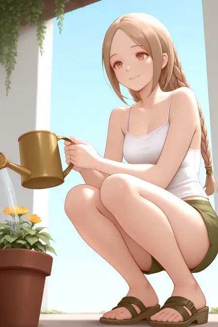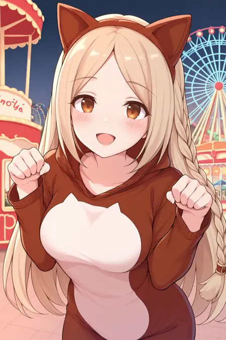 Trigger word is "pcovla" and "light brown hair, long hair, braid, amber eyes" is required.